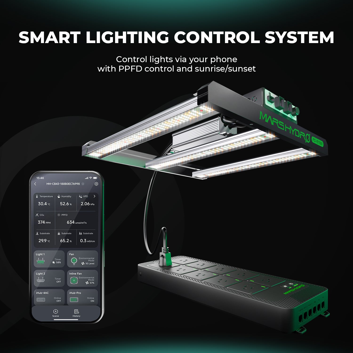 Dank fortschrittlicher Temperatur- und Feuchtigkeitsstrategien sowie Echtzeit-VPD-Überwachung (Vapor Pressure Deficit) ermöglicht der iHub Pro den Anbauern, automatisch optimale Bedingungen aufrechtzuerhalten. Im Vergleich zur Vorgängergeneration bietet dieses Modell eine präzisere, intelligentere Klimaregelung für alle angeschlossenen Geräte.