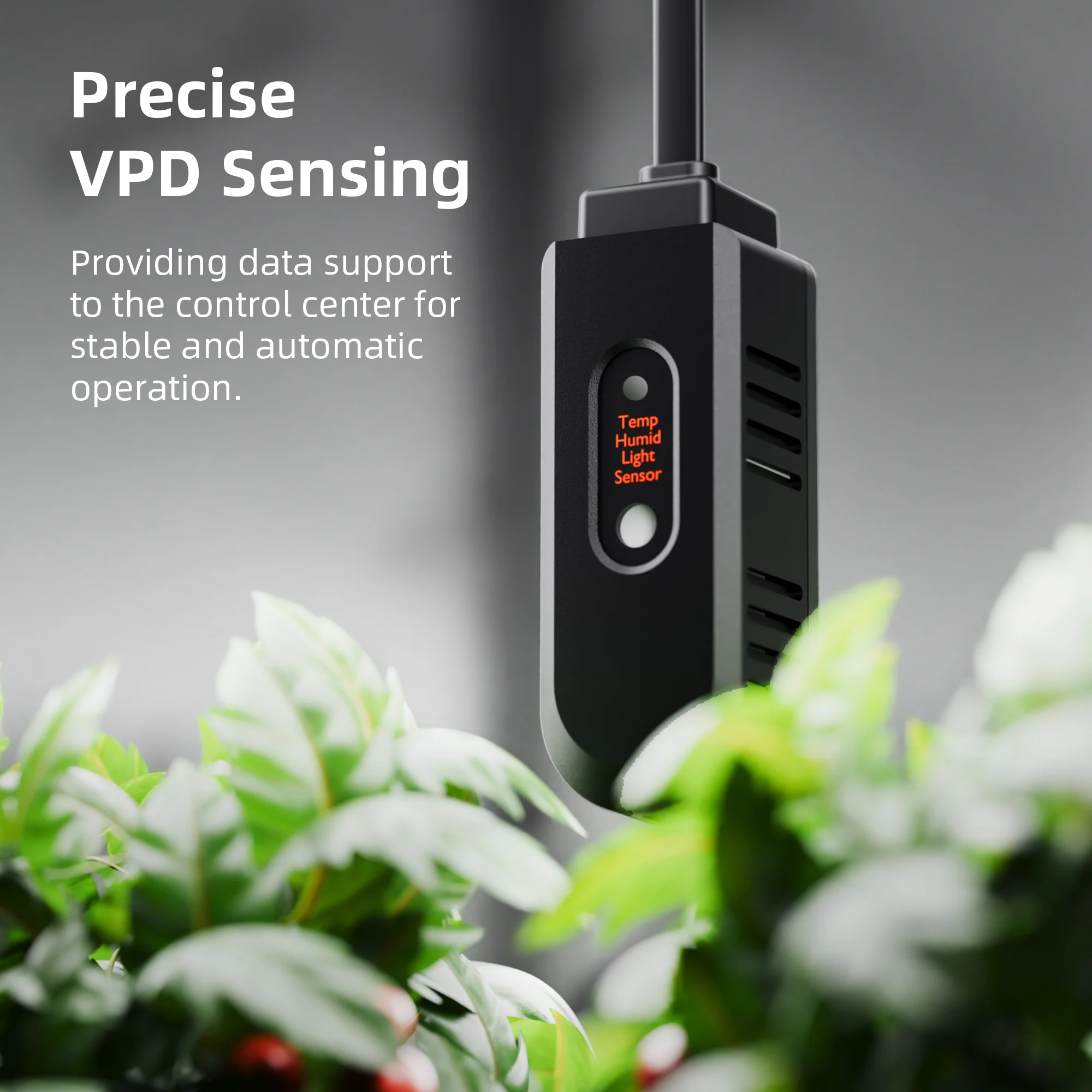 GGS Temperatur-Feuchtigkeits-Lichtsensor – Dieser Sensor überwacht Temperatur, Luftfeuchtigkeit und Tag-/Nachtzyklen im Growzelt, optimiert die Pflanzenbedingungen und hilft Ihnen, die ideale Umgebung für schnelleres und gesünderes Pflanzenwachstum aufrechtzuerhalten.